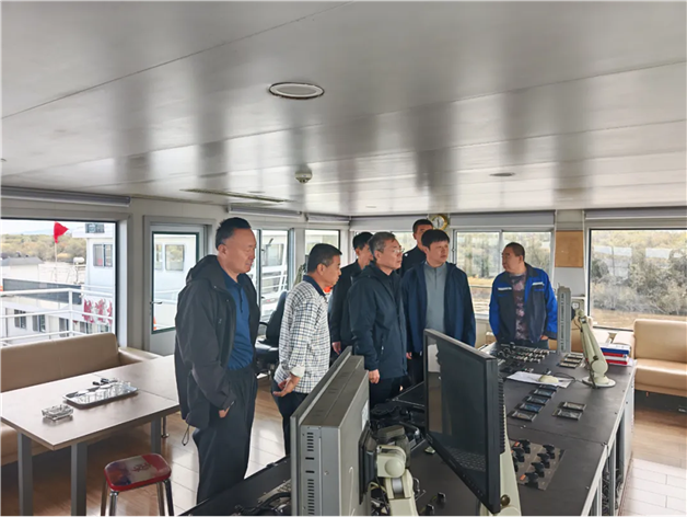 10月2日,国庆、中秋双节期间,省航务事业发展中心党委书记、主任赵勇刚深入省航道事务中心抚远航道站房改造工程现场,实地督导检查施工安全工作,并对龙浚21船队进行了细致检查。省航道事务中心、佳木斯航道中心相关人员参加检查。