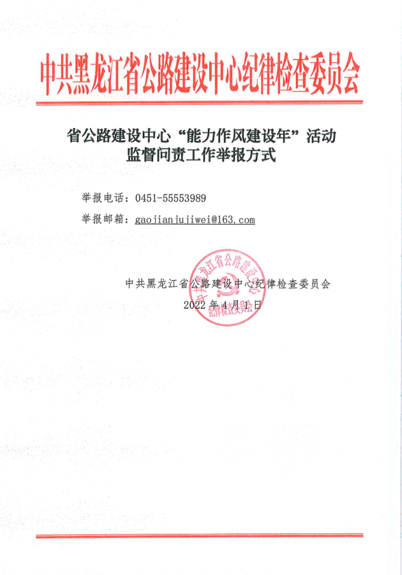 黑龙江省公路建设中心“能力作风建设年”活动监督问责工作举报方式
