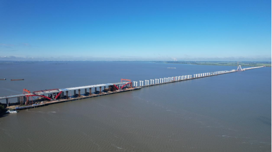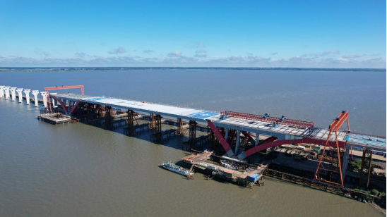 此次松花江特大桥主航道桥中跨桥面落梁顺利完成,为项目“夏季攻势”吹响冲锋号。在“大干60天”攻坚行动中,项目办也将打好每个节点攻坚战,不断强化施工管理、压实安全责任,夯实质量管控,优化工艺流程,向着年度目标冲刺。