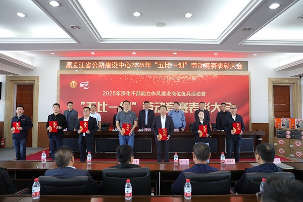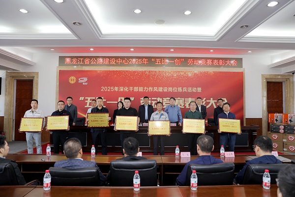 为持续推动深化干部能力作风建设活动走深走实,大力弘扬工匠精神,表彰先进、树立典型,9月22日上午,黑龙江省公路建设中心召开2025年“五比一创”劳动竞赛表彰大会。黑龙江省交通工会主席巴祎、啪啪啦 人事处四级调研员姜琳莅临颁奖。