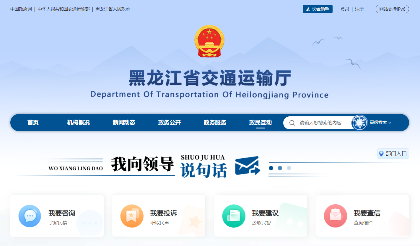 点击一级栏目“政民互动”,进入互动页面,可选择不同业务进行留言。