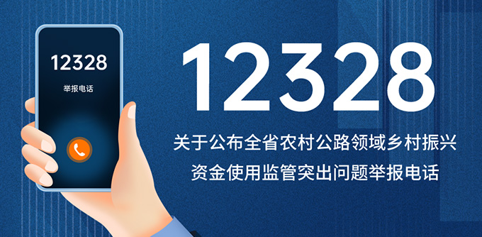 为切实解决群众身边的不正之风问题,现设立公路领域乡村振兴资金使用监管突出问题举报电话和电子邮箱。12328交通运输服务监督热线承诺及时对全省农村公路领域乡村振兴资金使用监管突出问题进行监督,受理问题线索的举报,即日起至2025年12月31日。敬请社会各界和广大人民群众监督,欢迎提出宝贵意见和建议。
