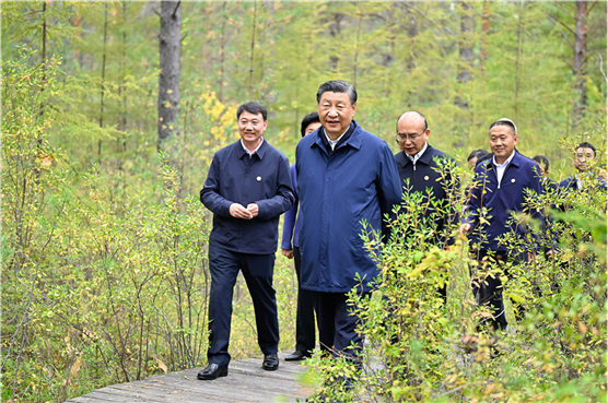 9月6日至8日,中共中央总书记、国家主席、中央军委主席习近平在黑龙江考察。这是6日下午,习近平在大兴安岭地区漠河市漠河林场自然林区考察。新华社记者 殷博古 摄