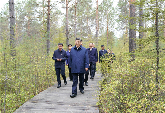 9月6日至8日,习近平在黑龙江省委书记许勤和省长梁惠玲陪同下,来到大兴安岭、哈尔滨等地,深入林场、乡村、高校等进行调研,前往灾后恢复重建现场看望慰问受灾群众。