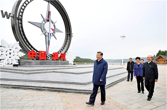 9月6日至8日,中共中央总书记、国家主席、中央军委主席习近平在黑龙江考察。这是6日下午,习近平在大兴安岭地区漠河市北极村考察。新华社记者 殷博古 摄