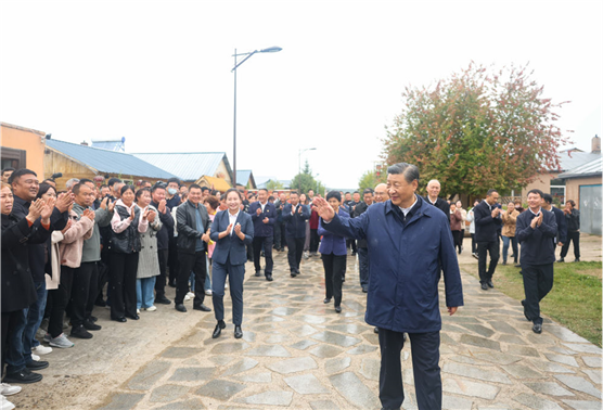 9月6日至8日,中共中央总书记、国家主席、中央军委主席习近平在黑龙江考察。这是6日下午,习近平在大兴安岭地区漠河市北极村考察时,同当地群众亲切交流。新华社记者 鞠鹏 摄