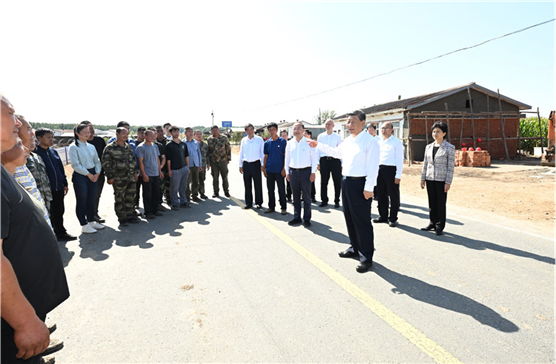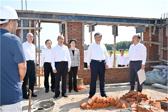 9月6日至8日,中共中央总书记、国家主席、中央军委主席习近平在黑龙江考察。这是7日上午,习近平在遭受洪涝灾害的哈尔滨尚志市老街基乡龙王庙村,察看水毁房屋重建情况。新华社记者 殷博古 摄